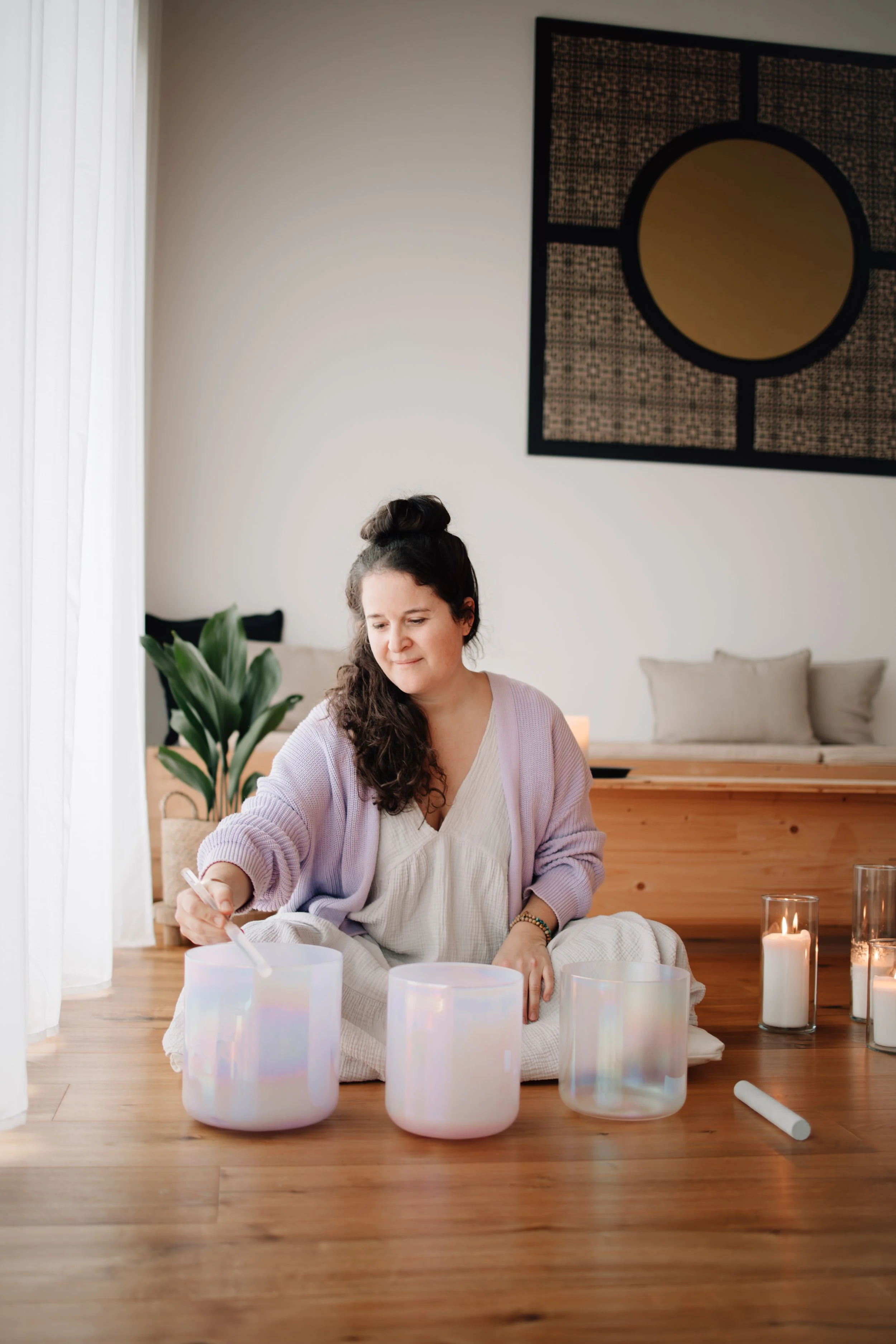 Dann begleiten dich die Schwingungen von Kristallklangschalen und weiteren Instrumenten in tiefe Entspannung. Zum Abschluss gibt es Raum für Stille, Reflexion, intuitives Journaling und achtsames Teilen im Kreis