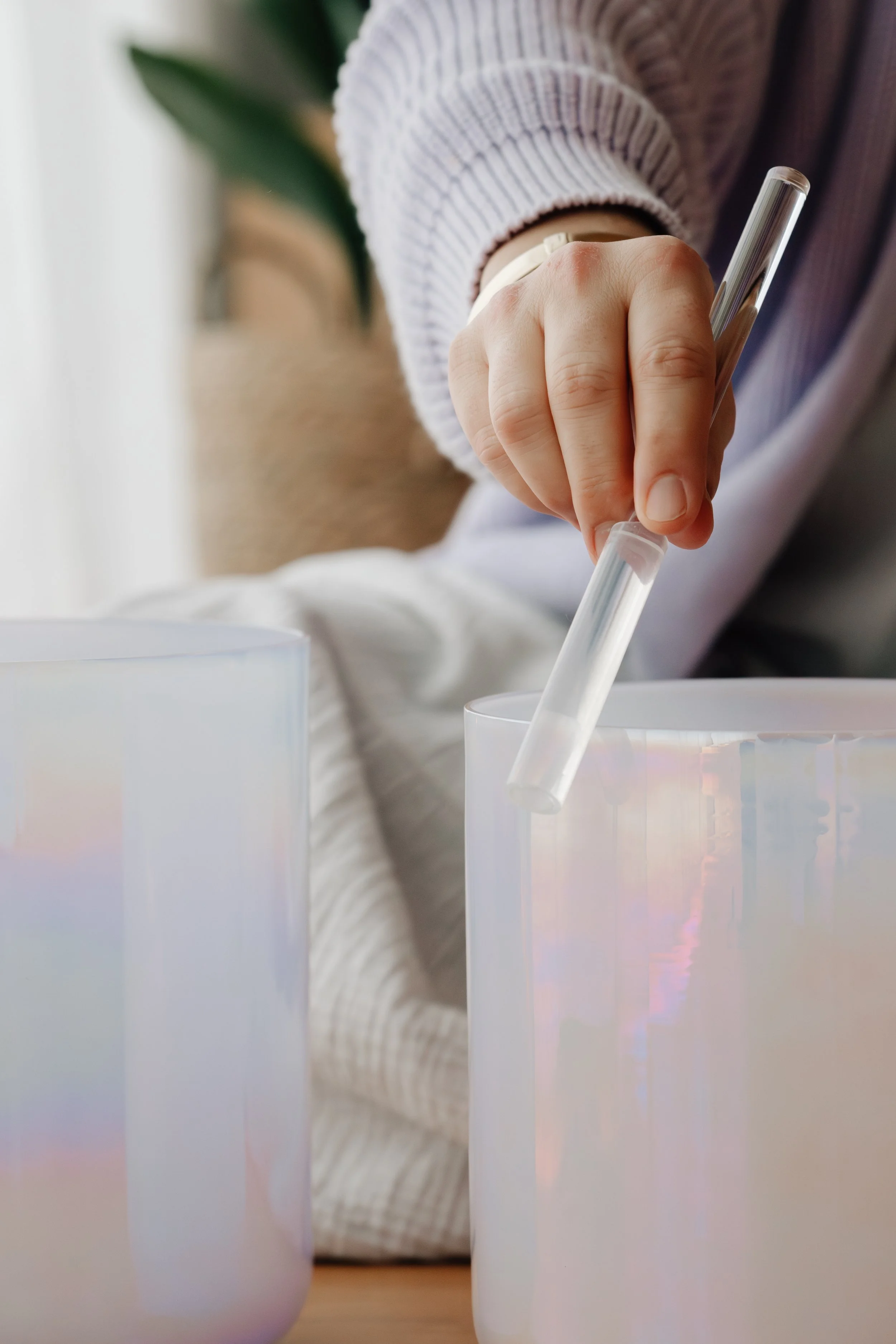 Im Online Sound Bath öffnet sich ein virtueller Raum für Einkehr, Entspannung und innere Verbindung, ganz bequem von Zuhause aus. Du liegst auf einer weichen Unterlage und lauschst den Schwingungen der Kristallklangschalen und weiterer Instrumente, die dich in eine tiefe Ruhe begleiten.